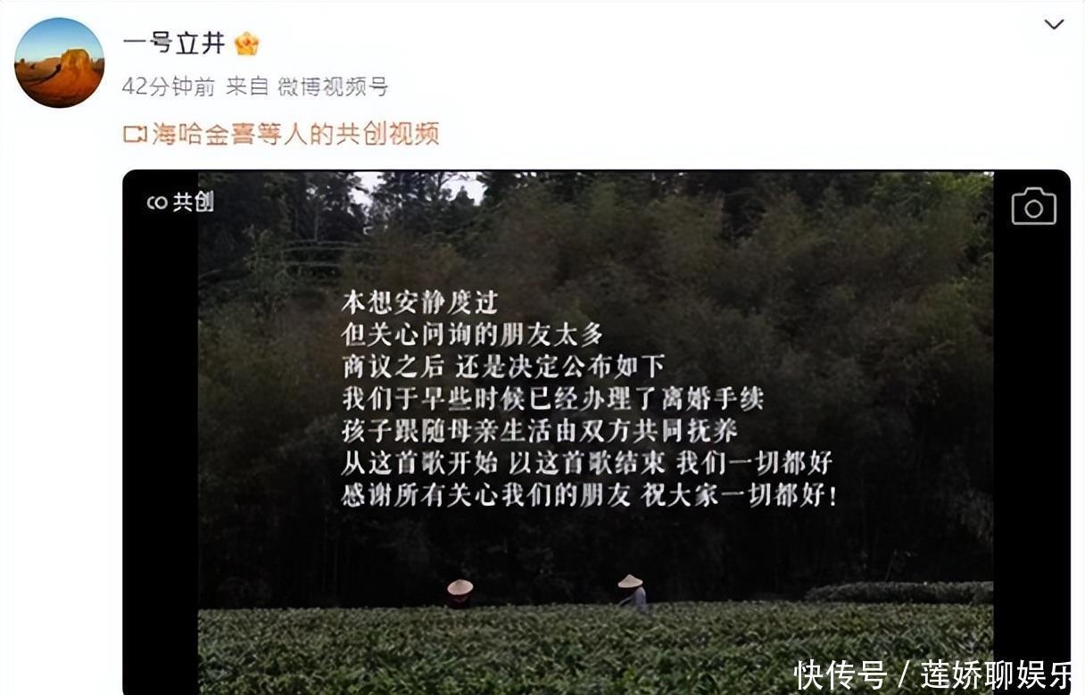 其实官宣后小时,李先生还更新了动态,又开始宣传起了茶叶,十多分钟的视频来介绍这茶,看来还是没死心。毕竟闺女还这么小呢,还要赚钱养孩子,细心的网友扒出九月底海哈金喜发布的动态。